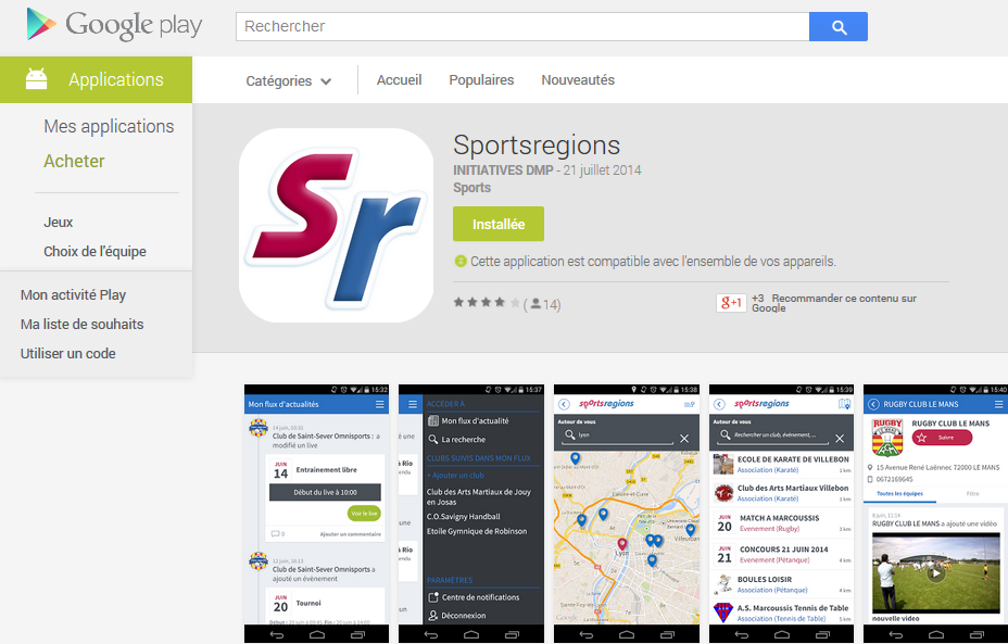 L'application Sportsregions permet de suivre l'actualité des clubs sportifs présents sur Sportsregions.fr